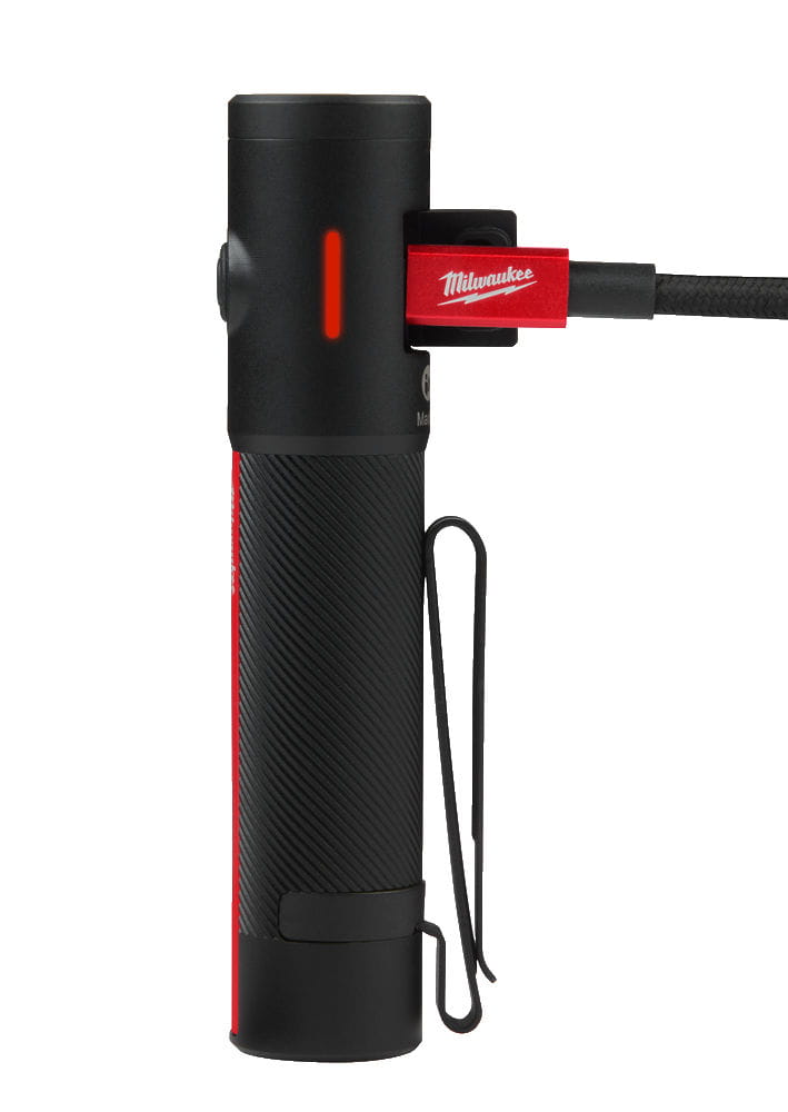 - Wygodne ładowanie wbudowanego akumulatora MILWAUKEE® przez gniazdo USB poprzez kabel mikro-USB lub gniazdo prądu zmiennego (włącznik gniazdkowy kupowany oddzielnie)