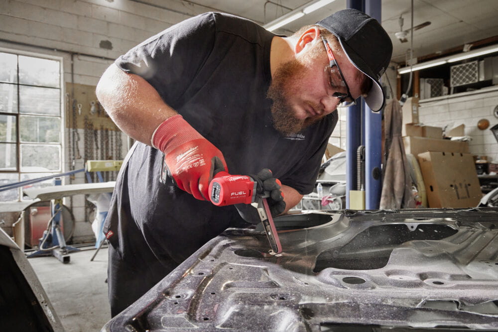 - Najlżejszy bezprzewodowy pilnik taśmowy na rynku - tylko 1 kg z akumulatorem 2 Ah.