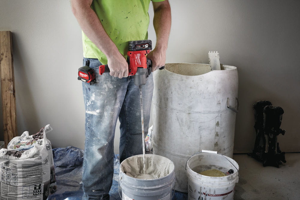 - Bezszczotkowy silnik POWERSTATE™ zapewnia odpowiednią moc do mieszania gęstych produktów, jak np. beton czy zaprawa murarska
