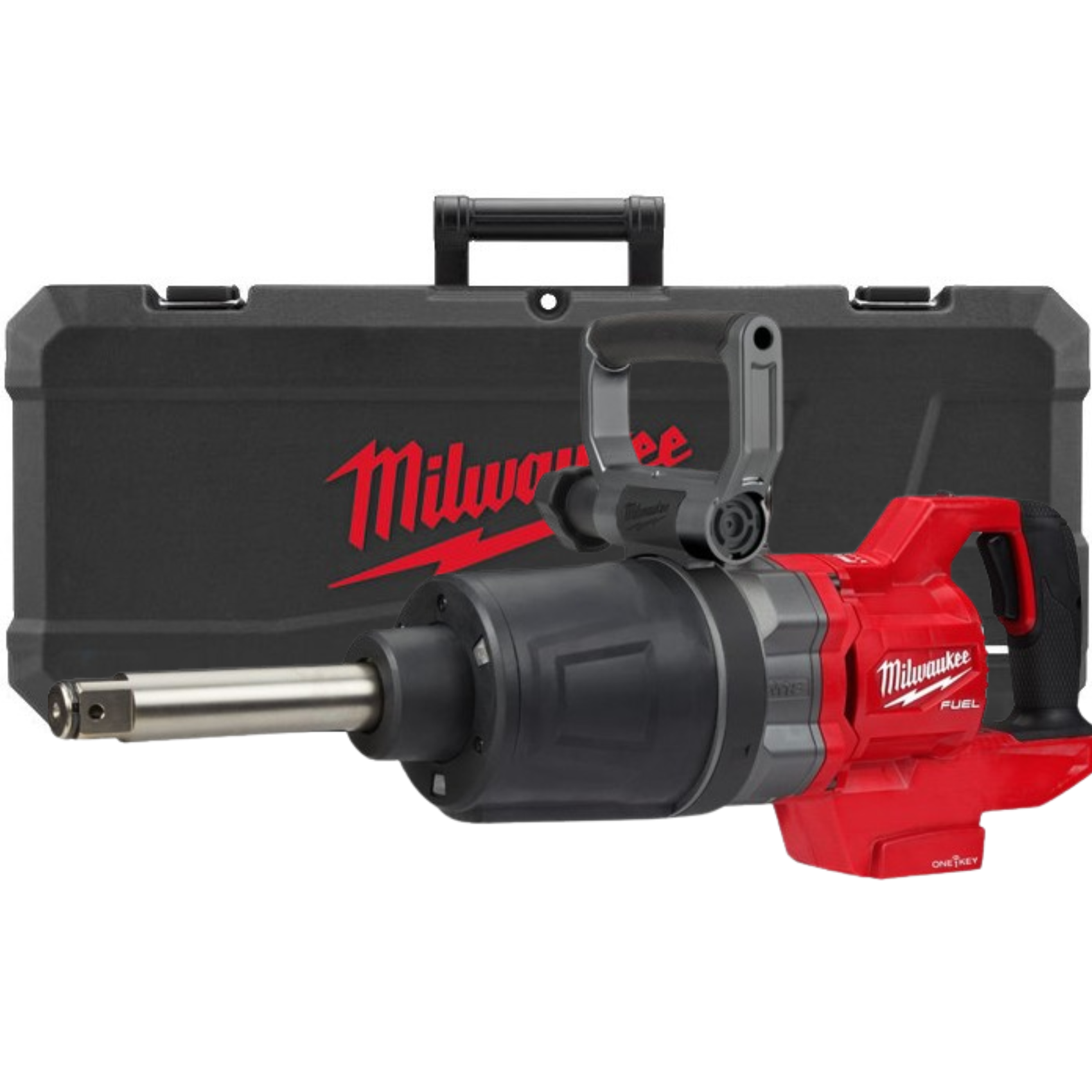 - M18 FUEL™ ONE-KEY™ Klucz udarowy 1″ z rękojeścią D, długim wrzecinem i pierścieniem zapewnia maksymalny moment obrotowy o wartości 2 576 Nm zastępując klucze przewodowe, pneumatyczne oraz napędzane silnikiem benzynowym